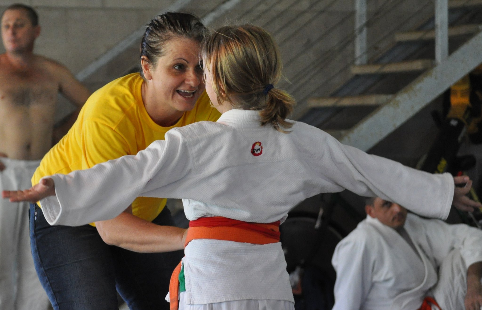 Under the Judogi, boys wear underpants. Girls white t-shirt with underpants. Short Tights/skins are also acceptable.